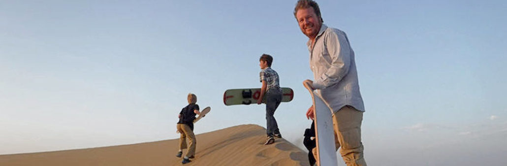 After five minutes of hair-raising ups and downs, we reached another steep ridge. We grabbed our snowboard-shaped sandboards, which were made of wood with ill-fitting Velcro straps for shoes. But Tom, our driver, suggested a different method for descending: He told me to lie on the board on my stomach, then shoved me headfirst down the giant dune. I was flying, screaming, using only my feet as brakes, wondering if this were the end.